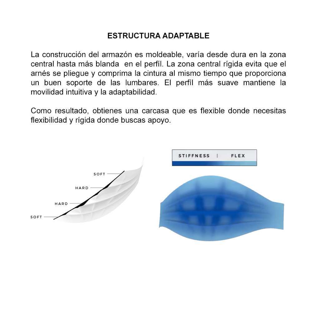 El arnés ECLIPSE es significado deequilibrio perfecto entre rigidez y flexibilidad, te proporciona apoyo donde lo necesitas y te da la libertad de moverse con total comodidad en cada momento.