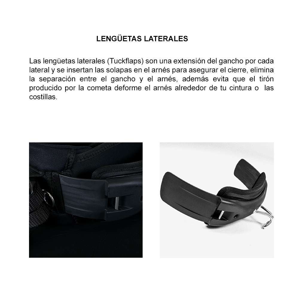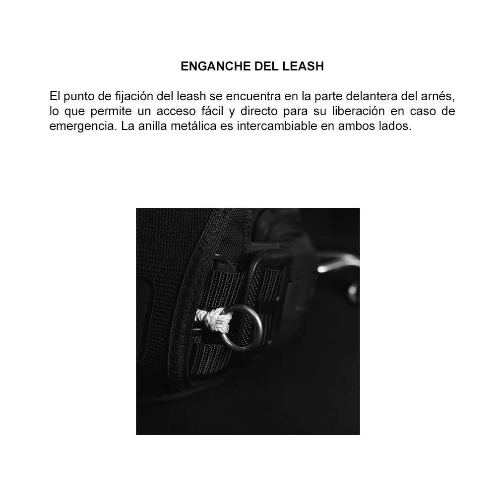 El arnés incluye: gancho estándar, cabo para gancho corredizo y corta líneas.