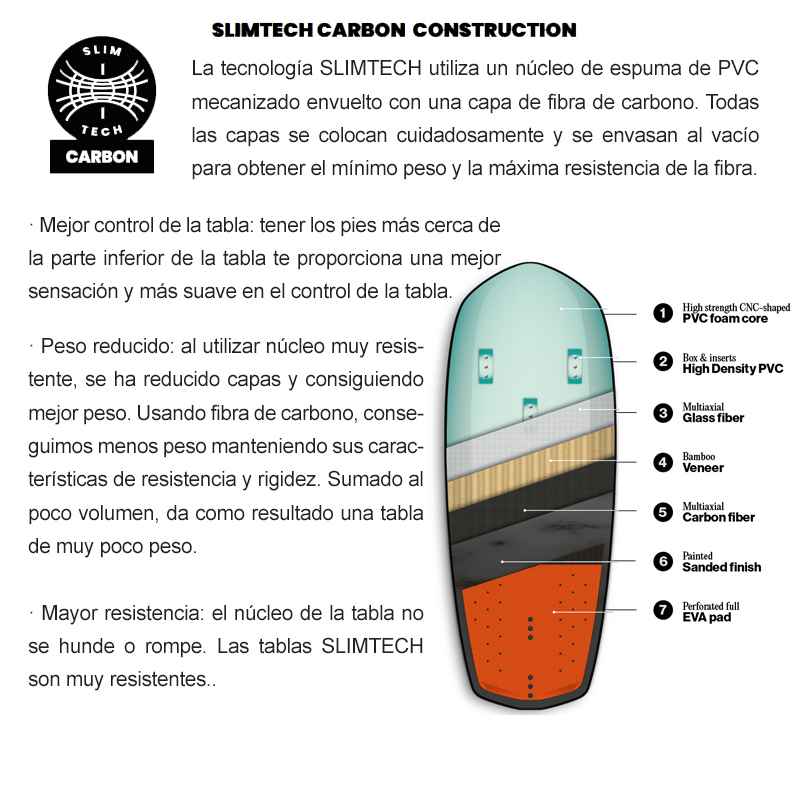 Con un diseño optimizado para foiling, incorpora cantos biselados, doble cóncavo y un outline específico, logrando una navegación fluida y perdonadora. Su construcción en PVC foam core con laminado de carbono aporta mayor rigidez y estabilidad, haciendo que cada sesión sea más eficiente y divertida.